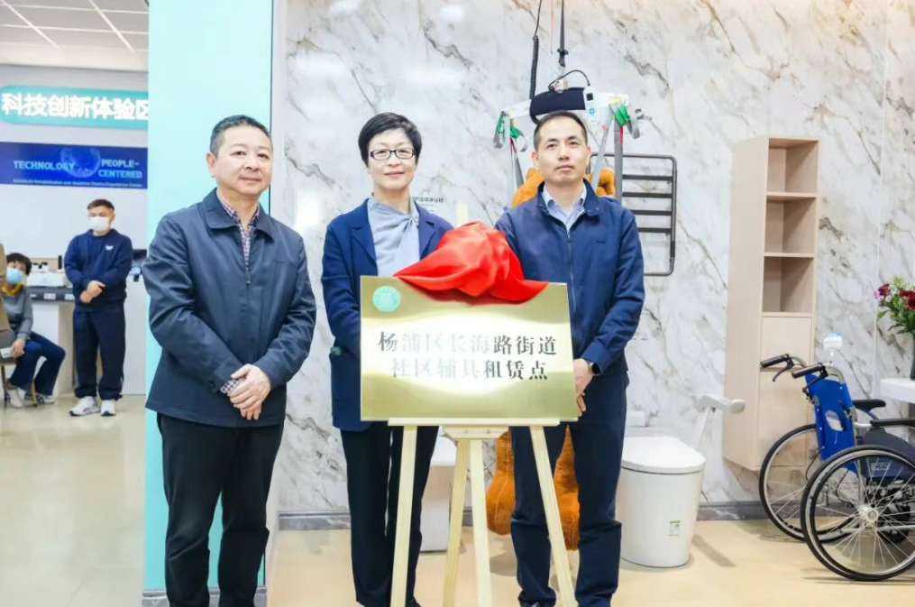 At the opening ceremony, Mr. Yu Hongliu, President of the Shanghai Rehabilitation Equipment Association, fully affirmed the innovative value and development prospects of the experience center. Subsequently, the Shanghai Civil Affairs Bureau, Yangpu District Civil Affairs Bureau, and leaders of Changhai Road Street jointly awarded the "Assistive Device Community Rental Point" certification plaque to the Experience Hall, marking its official becoming a key part of the community rehabilitation service network and building a "heartwarming bridge" to residents' families.